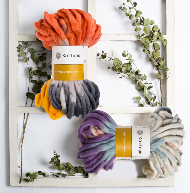 Kartopu Wool Decor está hecho de 100% lana Super wash. Esta lana natural de peso jumbo es casi como un roving de lana con giros raros. Esta lana es genial para trabajar tanto con ganchillo como con agujas de tejer y también para tejer con las manos.